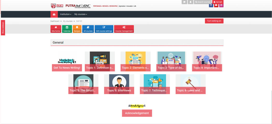 From 2018, my lecturer, Dr. Akmar Hayati Binti Ghazali asked me to join her team in making a Massive Open Online Course (MOOC). In 2019, it was finally materialized in Universiti Putra Malaysia's MOOC website. We have launched to the students and is free to join. It has been selected by UPM as an official course in OpenLearning and is the only MOOC for Journalism in Media.The course consists of 8 topics - each topic has study materials, assessments and a discussion.Click picture to go be directed the MOOC.